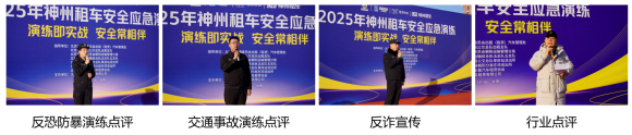 北京市公交总队出租支队租赁中队董警官、北京市交通运输综合执法总队五支队蔡副大队长、北京市公安局公交总队草房站派出所张警官,分别从执法监管和公共安全角度进行了专业点评,对演练的实战性和组织工作予以充分肯定,并就持续优化细节提出了宝贵建议。北京出租汽车暨汽车租赁协会副秘书长兼租赁分会会长杨京生代表行业进行了精彩点评,认为此次演练为汽车租赁行业树立了高标准的安全管理实践典范,肯定了此类演练对于筑牢行业安全基底、保障市民安全出行的积极意义。