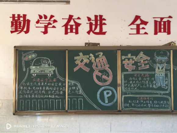 黑板报 +宣传栏,营造浓厚氛围。为让交通安全教育入脑入心,学校组织各班级开展交通安全主题黑板报创作活动。同学们发挥想象力和创造力,以漫画、儿歌、标语、知识问答等多种形式,将交通安全知识融入版面设计中。一幅幅色彩鲜艳、内容丰富的黑板报,成为班级里一道独特的“安全风景线”,既锻炼了学生的动手能力,又让大家在创作和观赏中巩固了交通安全知识。同时,学校还更新了校园交通安全主题宣传栏,通过清晰的图文、实用的贴士,全方位普及过马路、乘车、骑行等不同场景下的交通安全规范,让学生在校园内随时能学习、受教育,营造出“人人学交通法规、个个守交通规则”的浓厚氛围。