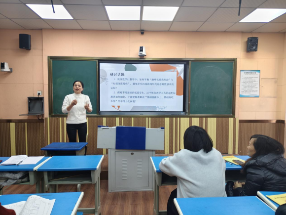 研讨环节氛围热烈,老师们围绕“如何平衡AI游戏互动与知识深度吸收”“怎样细化AI个性化工具适配标准”两大核心话题各抒己见、深度交流,碰撞出多项兼具针对性与可操作性的思路,为后续教学优化凝聚了共识。