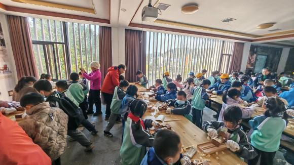 一年级学子踏入东生围这座“客家建筑瑰宝”,穿梭于九井十八厅的青砖黛瓦间,沉浸式感受先民的建筑智慧。非遗漆扇绘制、趣味木工手作等活动,让传统文化在指尖流转,劳动乐趣在心田绽放。二三年级学子奔赴三百山,探秘东江源头的绿水青山,在护源石前聆听动人护水故事,于漫云栈道拥抱自然,环保种子悄然扎根心底。