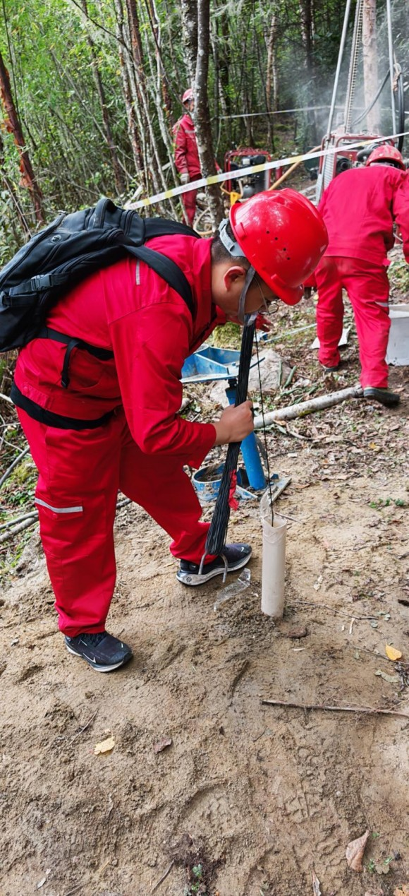 8月的林芝进入雨季,持续不断的降雨让山体松动,频繁出没的藏马熊等野生动物更为作业增添了不少难度。测线核心区域存在11km的高海拔无人区,海拔超过4300m,山体陡峭,作业时只能攀爬前进,前进50m就让人气喘吁吁、汗流浃背;同时,工区树林茂密,无法使用无人机辅助施工,多次论证,钻机难以到达点位,只能靠人工“边修路、边抬机”硬往上闯。