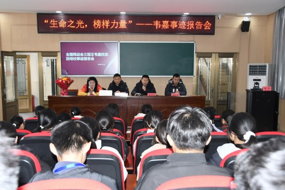 全国残运会三冠王韦嘉荣归龙冈初中作事迹报告