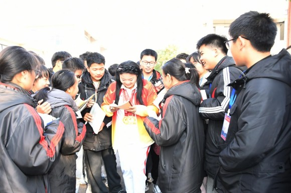 生命之光点亮校园,榜样力量激励成长。报告会上,韦嘉学姐向同学们娓娓道来自己的重生之路。从绝望挣扎到咬牙坚持,从康复训练的剧痛到赛场夺金的荣光,每一个细节都感人至深。她坦言,母校的教诲和拼搏精神,是支撑自己跨越坎坷的重要力量。互动环节中,同学们踊跃提问,韦嘉真诚分享自己面对困境的心态调整与奋斗心得,朴实的话语里满是坚韧与乐观,让在场师生深受触动。学生代表为她献上鲜花,稚嫩的脸庞上写满敬佩,温情的一幕令全场动容,活动期间同学们还向韦嘉学姐要了签名。