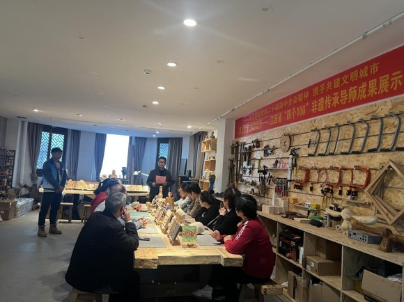 近日,江西省赣州市寻乌县“匠人薪传”非遗木雕成果展在其寻藏木雕工作室馆启幕。作为江西省“四个100”文化导师中的非遗传承导师,何坤携10余名弟子以百余件作品亮相,系统呈现了其推动非遗进校园、出省交流、融入日常的实践成果。此次展览既是寻乌县非遗保护工作的中期成果检验,更彰显了省“四个100”文化导师下乡计划“以导师引领、以项目驱动”的创新模式在基层落地生根的蓬勃生机。
