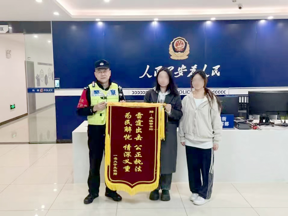 此前,小张在某培训机构交1000元报名费后因个人原因放弃学习,与该培训机构发生退费纠纷,双方协商无果后小张报警。许峰迅速到场,通过耐心调解与普法,促使商家同意全额退还1000元报名费。小张专程送来锦旗与感谢信,表达对民警高效为民解忧的诚挚谢意。