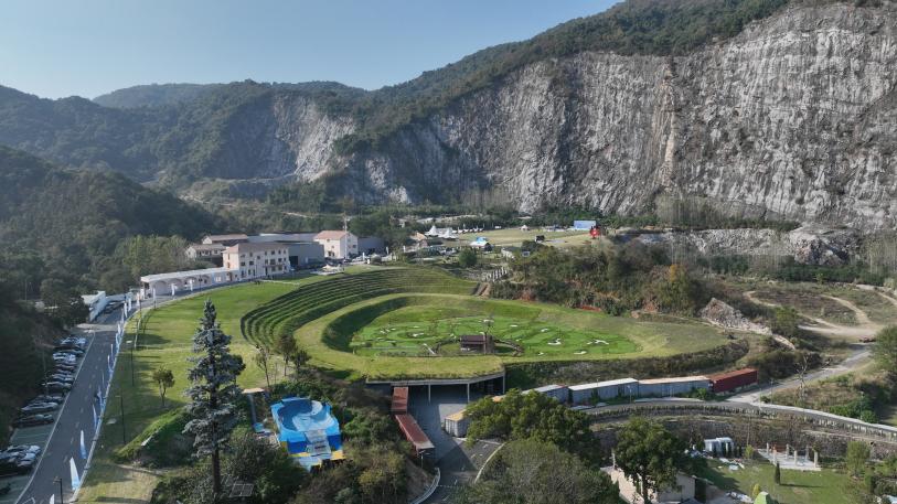 2023年,周富村引进石山下文旅集团(下称“石山下”),在新塘的矿坑里划出2000亩地,改造成石山下矿坑艺术公园(下称“公园”)。如今的公园里,汗血宝马在草地上驰骋,矿山的山壁变身超宽银幕,游客们可以在星空下看电影……这个盘踞在矿山边的户外露营地,凭着“矿坑+艺术+露营”的混搭风一跃成为市民游客的打卡胜地。航空救援队空勤培训基地、浙江消防应急救援直升机基地和浙二应急救援直升机基地也都落地石山下。“今年还新增了高尔夫、山地自行车等户外运动项目,丰富游客体验,项目目前已经开放。”石山下文旅产业负责人陈琪介绍。在公园露营地附近,还有个山下美术馆,这里会不定期举办先锋艺术展;2024年,原来的石粉厂也改造成为古德堡庄园,欧式古堡风格的拍摄基地为矿山带来异域风情。