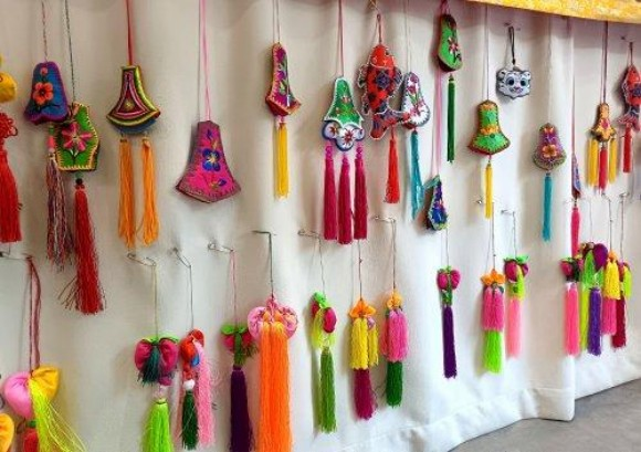 为了打通共富的“最后一公里”,工坊创新推行“居家灵活就业”模式,让绣娘们通过线上平台自主接单,真正实现了“带娃做饭两不误,刺绣增收两相宜”。冶生莲带领编织队在创作中既严格保留民族文化精髓,又大胆融入现代审美元素。她们的作品通过网络销售、参加展览等方式不断走向更广阔的市场,赢得了广泛认可。