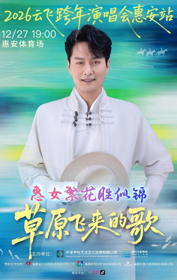 备受惠安市民与音乐爱好者期待的《惠女繁花胜似锦》云飞“草原飞来的歌”2026跨年演唱会惠安站已正式开票!当草原的辽阔歌声遇上惠安的山海风情,这场以“山海对话、文化共融”为核心的年度收官音乐盛宴将为2025年画上圆满句点。目前,门票已在大麦平台全面开售,诚邀你共赴12月27日的文化之约,在旋律中迎接崭新一年!值得期待的是,本次演唱会还有王二妮、玖月奇迹王小玮、郭津彤、蒙克、小可彧等一众实力嘉宾助阵,更有特色惠安女走秀环节惊艳亮相,多重惊喜等你来解锁!