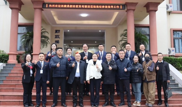 12月23日下午,西藏昌都市教育局党组成员、副局长黄燕平率教育代表团一行来到重庆华绣中等专业学校考察。据悉,重庆对口支援西藏昌都,迄今已援建数所学校,两地合作紧密,重庆市教委、重庆市永川区教委十分重视此次活动,相关领导赶赴华绣中专,一同专题考察并交流国防教育工作。华绣中专校长陈涛、常务副校长杨超全程陪同调研考察,仔细介绍学校国防教育工作开展和发展情况。