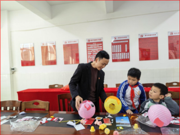 游戏过后,到了孩子最喜欢的动手环节,制作新年灯笼。孩子们在老师们的帮助下,制作出一盏盏可爱俏皮的灯笼。随后,活动进入了最温情的时刻——爱心礼物赠送环节。学校领导作为代表,将精心准备的学习文具送到每一位留守儿童手中。这不仅仅是一份礼物,更是一份殷切的期望和深深的关怀。老师们俯身与孩子们交流,鼓励他们“好好学习,天天向上”,用知识创造未来。