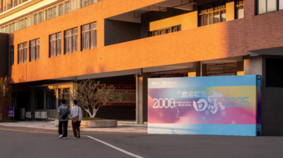 ▲广应科的校园里立着不少“欢迎校友回家”的装置牌,校庆氛围浓厚。