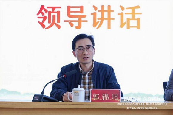 泉州台商投资区教育文体旅游局党委副书记、副局长、四级调研员郭锦培作重要讲话。他指出,当前区域基础教育正处于“优质均衡、内涵提质”的关键转型期,举办本次活动是深化“名优校+”教育发展共同体建设的重要举措。他强调,共同体高质量发展需把握四大关键:构建融合育人闭环、推动课堂智慧转向、健全机制联动共建、强化教师专业发展,勉励广大教师以活动为契机互学互鉴,将经验转化为课堂实效,助力区域教学质量整体提升。