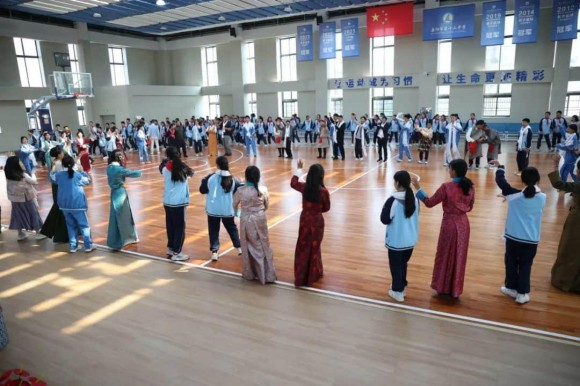 2024年11月,西藏桑日县中学优秀学子携手岳阳市第十二中学学生代表共跳锅庄舞