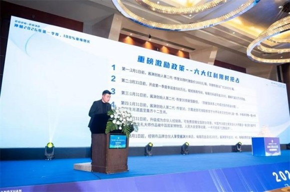 为助力年度业绩冲刺,论坛同步重磅推出战略级产品——酱渊创始人第二代·传誉30。市场总监张浩现场发布针对经销商与合伙人的重磅扶持政策,涵盖限时返利、贡献值翻倍、达量赠礼等六大激励措施,同时配套严格的渠道管控与价格保障两大机制,旨在与合作伙伴共建共赢生态,凝聚发展合力。