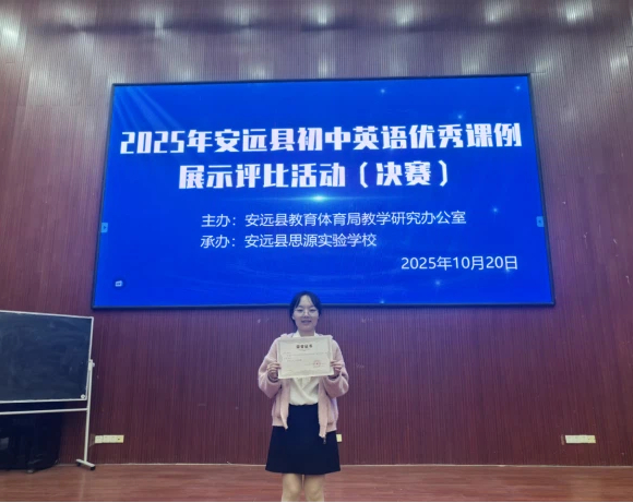 安远县濂江中学王明风在2025年全县初中英语优质课例展示活动中斩获一等奖